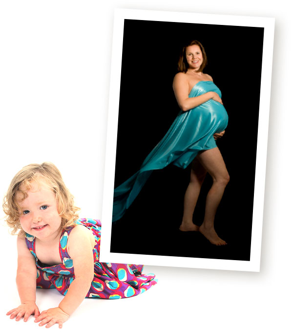 We set up a studio with a choice of either a Black or White background in the comfort of your own home. This enables you to feel relaxed and not have to endure the stress and inconvenience of travelling, particularly if you are heavily pregnant.
